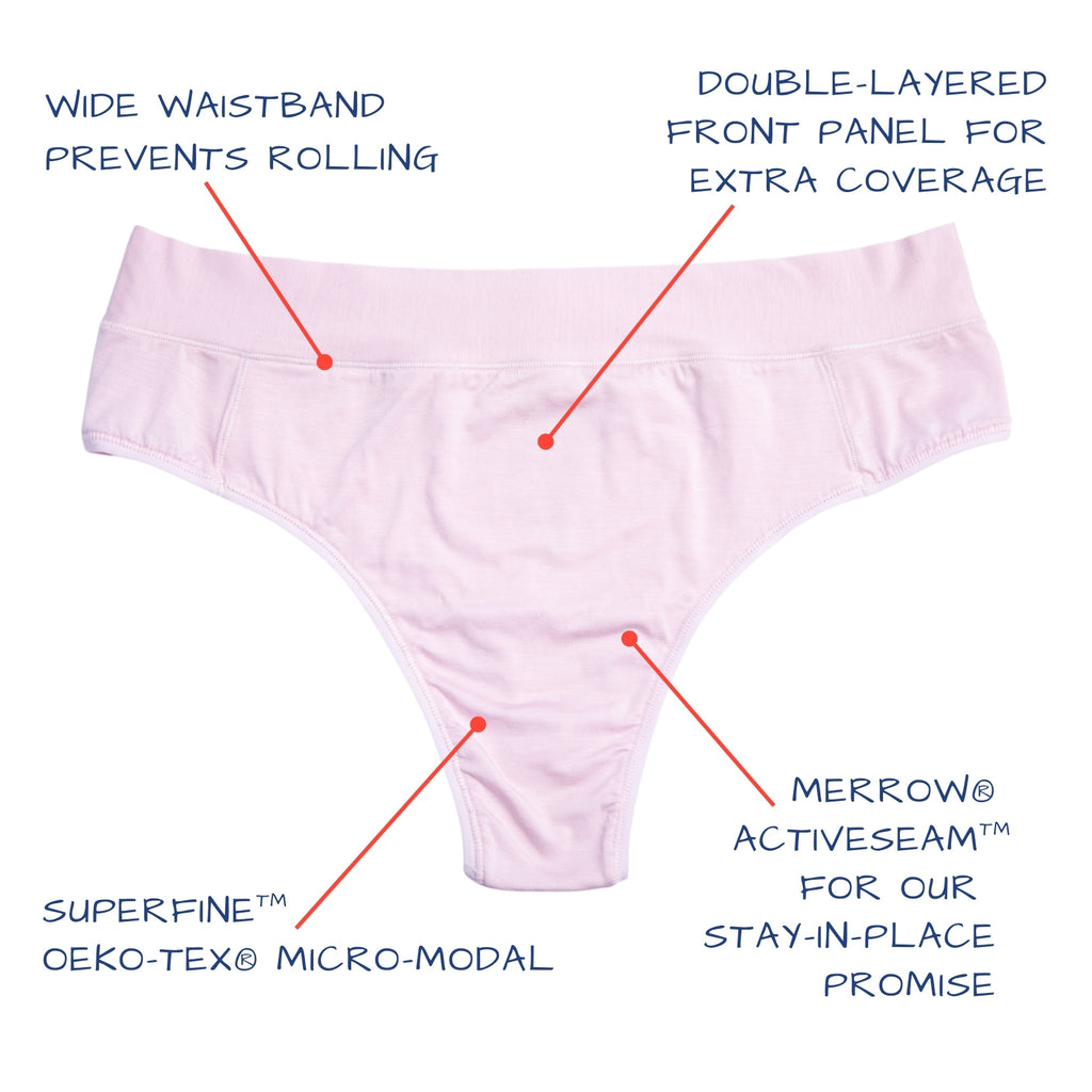 Durable Design: The front panel of the thong is double-layered for added comfort and coverage, while the wide waistband prevents rolling and ensures the thong stays in place.